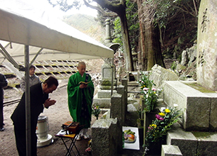 【三重】解放前、大阪から伊勢まで1本のレールで結ぶ三重県内一志郡から名張に抜ける青山隧道の工事中に犠牲となった同胞8人と日本人8人を偲ぶ旧青山トンネル工事殉難者慰霊祭が21日、名賀郡青山町伊勢路の供養塔前で営まれた。 民団三重(申載永団長)と県日韓協(山口久彦会長)が共催。申団長と山口会長、洪光子婦人会三重会長のほか、韓相赫駐名古屋領事も参列した。申団長は「毎年皆さんにきてもらい、うれしい。これからも継続していく」と述べ、青山町の善福寺住職の読経のあと、順に焼香した。 犠牲者に同胞が含まれていたことは地元の2つの町史でも伏せられていた。03年になって青山町立青山中学1年生たちの調査で明らかになり、この年から民団と日韓協が慰霊祭を始めた。今年で11回目。 (2014.3.26 民団新聞) |