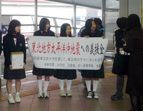 ¡¡¡ÚÂçºå¡Û¶â¹ä³Ø±à¤ÎÀ¸Å̤¬3·î24¡¢25Æü¤ÎÄ«¡¢ºÇ´ó¤ê±Ø¤Î¥Ë¥å¡¼¥È¥é¥à¡Ö¥È¥ì¡¼¥É¥»¥ó¥¿¡¼Á°¡×±Ø²þ»¥¸ýÉÕ¶á¤ËΩ¤Á¡¢Ä̶еҤËÅìÆüËÜÂç¿ÌºÒÈïºÒ¼Ô¤Ø¤ÎµÁÙжâ¼õÉÕ¤ò¸Æ¤Ó¤«¤±¡¢Ìó4Ëü±ß¤ò½¸¤á¤¿¡£