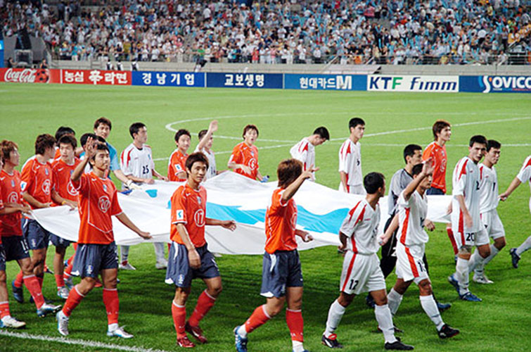 | | Àª¤¾¤í¤¤¤Ç¡Ö»ä¤¿¤Á¤¬²ñ¤¦Æü¡×¤ò²Î¤¦ | | | 2005ǯ8·î¡¢¸÷Éü60¼þǯ¤Ë¹Ô¤ï¤ì¤¿ÆîËÌÅý°ì¥µ¥Ã¥«¡¼ | | | ¸÷Éü70¼þǯ¤Î¸ø¼°¥¨¥ó¥Ö¥ì¥à¡£¡Ö°ÎÂç¤ÊÆ»¤Î¤ê¡¢¿·¤¿¤ÊÄ·Ìö¡×¤È¤¤¤¦¥¹¥í¡¼¥¬¥ó¤¬°õ¤µ¤ì¤Æ¤¤¤ë |