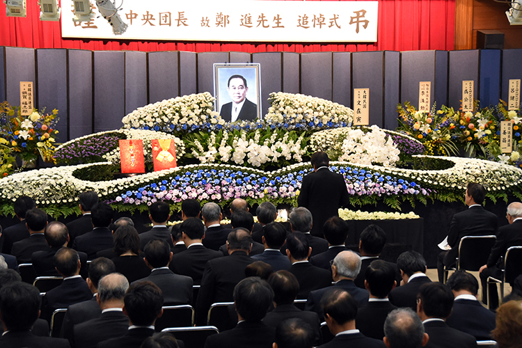 民団中央本部の第46、47代団長を務めた故鄭進常任顧問(享年80歳)の追悼式(民団葬)が21日、韓国中央会館(東京・港区)で営まれ、民団や婦人会など全国から関係者が参列したほか故人と親交が深かった韓日両国の国会議員ら300余人が最後の別れを惜しんだ。