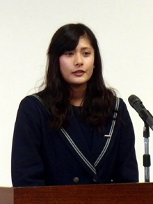【兵庫】神戸韓国教育院(趙美玉院長)主催の「第13回兵庫県高校生韓国語スピーチ大会」が18日、神戸市内の兵庫韓国文化教育院で行われ、県内10校から14人の弁士が日ごろの学習成果を競った。趙院長は「今日の大会が、みなさんの人生を豊かなものにする機会になることを期待する」と激励した。 大賞はミア美朱さん(兵庫県立須磨友が丘高校3年)。副賞として韓国往復航空券が贈られた。 金賞は朴聖恩さん(兵庫県立芦屋国際中等教育学校4年)、銀賞は門脇奈央さん(神戸市立須磨翔風高校3年)、加古鈴香さん(兵庫県立神戸甲北高校2年)、山岡彩苗さん(兵庫県立神戸甲北高校2年)、松村日南子さん(兵庫県立芦屋国際中等教育学校5年)の4人。 (2014.1.29 民団新聞) |