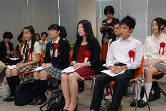 韓日祝祭ハンマダンの一環として第3回韓日交流作文コンクールの入賞者を招いての表彰式が9月28日、東京・新宿の駐日韓国大使館であった。 今回は韓国人と日本人が友情を深めるための具体的な提案を盛り込んだ作文が、中学生から大学生まで727人(39都道府県196校)から寄せられた。これは昨年の5倍以上に相当するという。審査の結果、9人が特に優秀と認められ、審査委員長を務めた申珏秀大使から賞状と副賞が贈られた。 最優秀賞受賞者は次のとおり。(敬称略)▽中学生部門・上原さら(東京学芸大学附属国際中等教育学校1年)▽高校生部門・廉睿隣(東京・玉川聖学院高等部3年)▽学生部門・官野愛美(東京・創価大学3年)。 (2012.10.3 民団新聞) |