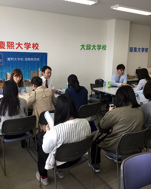 大邱大学校、嶺南大学校、慶煕大学校の各校関係者がブースを設け、学校の特色を説明。参加者の質問にも答えた。医療関係業に従事する日本人女性(24、大阪府)は「韓国に興味があり、自分流で韓国語は勉強したが、留学して医療の通訳にも役立てたいと思い参加した」と目を輝かせていた。