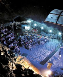 廃鉱をテーマパークにした駕鶴鉱山洞窟(京畿道光明市)。猛暑が続く中、ここは平均気温12度の別世界で、休日には1万人余が避暑に訪れる。6月末、洞窟内に350席の音楽ホールをオープン。「洞窟GoGoコンサート」と銘打ち、多彩なイベントを開催中だ。