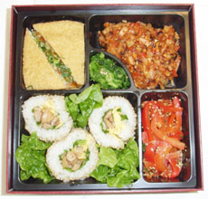 桜の開花を目前にした17日、韓国農水産物流公社東京aTセンター(李鍾堅支社長)、MOMO東京パイロットクラブ(相馬順子会長)共催のチャリティー韓国料理コンテスト「創作キムチ花見弁当」が東京・渋谷区の服部栄養専門学校で開かれた。2回目の共催となったコンテストでは、同クラブの会員ら120人がキムチをテーマにした弁当作りでアイディアを競った。