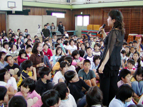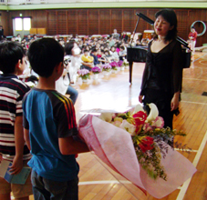 崔さんは自らの体験を紹介しながら、「好きなことをやっているのがパワー」「心の中で感じ、頭で考えたら、あとは行動」「自信はやるべきことをやった後についてくる」など、短いながら印象的な言葉で約30分間、児童に語りかけた。この後、1,2年生の児童も加わり、崔さんのピアノ演奏を鑑賞した。