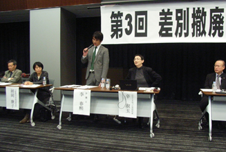 「表現の自由」との兼ね合いから容認されている「在日特権を許さない市民の会」(在特会)などによる排外差別デモの撤廃を求める第3回国会集会が11月28日、参議院議員会館で開かれた。集会ではジャーナリストや大学教授、弁護士ら6人が報告に立ち、「表現の自由」とのバランスを尊重しつつも一定の法的規制は必要との方向性を確認した。 在特会側が「錦の御旗」としているのが日本国憲法で保障された「表現の自由」。日本政府はこの「表現の自由」を盾にデモを許容しているため、警察に守られた「反韓・嫌韓デモ」が全国各地に広がっているのが実情だ。 11月10日には初めて東京の足立区でも行われた。ここでも「在日ゴキブリ朝鮮人」や「朝鮮人を叩き出せ」などのヘイトスピーチが行き交った。 報告者の一人でジャーナリストの安田浩一さんは、「規制すべき差別はない」とした日本政府の見解について「現実を無視したもの」と批判。「現場でいちばん沈黙を強いられているのは被害当事者。被害当事者だからこそ沈黙を余儀なくされている」と指摘した。 市民レベルでヘイトスピーチ反対運動を展開している辛淑玉さんによれば、「のりこえねっと」を立ち上げてからというもの、メールなどによる嫌がらせが殺到しているという。「当事者として日本社会で声を上げるのは大変」と、安田さんの発言を裏付けた。 李春熙弁護士も、当事者たるマイノリティーが自ら被害の回復に立ち向かうことがいかに難しいかを説き、「被害の存在、現状から考えよう」と訴えた。 師岡康子さん(大阪経済法科大学客員研究員)は、「不特定多数へのヘイトスピーチがマイノリティーに死ぬほどの苦しみを与えている」と前置きし、「まずこれを違法にしなければならない」と述べ、「包括的差別禁止法」の必要性を訴えた。 ただし、表現の自由とのバランスを尊重しなければならないことから、「規制は必要だが、乱用をどう防ぐか。乱用の危険を踏まえつつ、規制法をつくっていこう」と呼びかけた。 最後に呼びかけ人の有田芳生参院議員が、来年にも包括的差別禁止法を議員立法として国会に提出していくとの考えを明らかにしながら、「2014年を差別撤廃の大きなうねりをつくる年にしたい」と締めくくった。 (2013.12.11 民団新聞) |