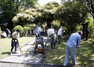 住民と清掃も 【大阪】大阪府の史跡「伝王仁墓」の墓域で清掃や苗木の手入れを続けてきた「王仁(わに)塚の環境を守る会」(吉留一夫代表、枚方市藤阪東町)が、今年で設立から30周年を迎えた。 いまでこそ塚の周りにはよく手入れされた無窮花が咲き誇り、参墓者のための王仁墓休憩所「善隣友好館」、さらに「百済門」も整備されているが、発足当時の史跡は荒れ放題だった。 当時、塚の前に引っ越してきた吉留さんは心を痛め、韓国から持ち帰った無窮花の苗木数十本を植樹した。地元住民も吉留さんと一緒に清掃や木の手入れに加わるようになり、85年3月に会が誕生した。 第30回総会は11日、王仁墓休憩所で開かれた。吉留代表は、あいさつで「王仁博士は4世紀、百済から孔子の論語や千字文を携え、倭国の飛鳥文化を開花させた。日本で初めての韓・中・日3カ国の絆といえる。王仁博士をシンボルに東アジアの善隣友好、民間交流を推し進めていこう」と呼びかけた。 (2014.5.28 民団新聞) |
