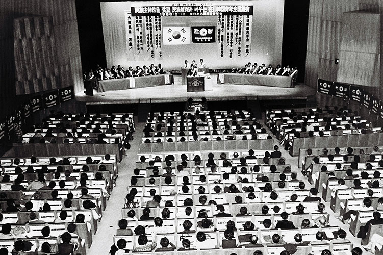 ¡¡½éÂå²ñŤÎÕúδƻ»á¤¬Î¨¤¤¤ëÂè1´ü¼¹¹ÔÉô¤Ï²ÝÂ꤬»³ÀѤ·¤Æ¤¤¤¿¡£²¿¤è¤ê¤â¡Öµì´ÚÀġפò¤Ï¤¸¤á¤È¤¹¤ë¡Ö´Ú̱Åý¡×¡Ê¸½´ÚÅýÏ¢¡Ë¤È¤ÎÆ®¤¤¤À¡£È¿¹ñ²ÈŪ¹Ôư¤ò·«¤êÊÖ¤¹¤³¤Î°ìÇɤËÂФ·ÀÄǯ²ñ¤ÏÌ۲᤹¤ë¤³¤È¤Ê¤¯µêÃÆ¹Ôư¤òŸ³«¤·¤¿¡£ .jpg) ¡¡77ǯ8·î13Æü¤Ë¤Ï¡¢ÅìµþÂæÅì¶è¤Î¡ÖÃÓ¥Îüʸ²½¥»¥ó¥¿¡¼¡×¤Ë¤ª¤¤¤Æ¡¢¡Ö´Ú̱Åý¡×¼çºÅ¤Î¡Ö³¤³°´Ú¹ñ¿Í̱¼ç±¿Æ°Âåɽ¼Ô²ñµÄ¡×¤Ê¤ë²ñµÄ¤òÁ˻ߤ·¤è¤¦¤È¤¹¤ëÀÄǯ²ñ°÷¤Èµì´ÚÀÄÌÁ°÷¤¬¾×ÆÍ¤·¡¢76¿Í¤ÎÀÄǯ²ñ°÷¤¬¹´Â«¤µ¤ì¤ë¤È¤¤¤¦¡Ö8¡¦13»öÂ֡פò°ú¤µ¯¤³¤¹¤Ë»ê¤Ã¤¿¡£¤³¤Î¾×ÆÍ»ö·ï¤òµ¯ÅÀ¤ËºÛȽƮÁ褬³«»Ï¤µ¤ì¡¢¡Ö´Ú̱Åý¡×¤ÎÀµÂΤä¼çÄ¥¤ÎÌ·½âÅÀ¤ò˽Ϫ¤··èÄêŪÂÇ·â¤òÍ¿¤¨¤¿¡£ ¡¡ÃÂÀ¸´Ö¤â¤Ê¤¤Ãæ±ûËÜÉô¤¬¼è¤êÁȤó¤À¤Î¤¬¡¢Á´¹ñºßÆüƱ˦ÀÄǯ¤ÎÏ¢ÂӤǤ¢ ¤ê¡¢¤½¤Î¾ì¤¬¥µ¥Þ¡¼¥¸¥ã¥ó¥Ü¥ê¡¼¤À¡£77ǯ8·î5Æü¤«¤é4Æü´Ö¡¢Ä¹Ì¤Î̸¥öÊö¹â¸¶¤ËÆÃÀߥ¥ã¥ó¥×¾ì¤òÀߤ±¡¢Á´¹ñ¤«¤éÌó1000¿Í¤ÎÀÄǯ¤¬½¸¤Ã¤¿¡£Íâǯ¤Ïµ¬ÌϤò³ÈÂç¡¢»°½Å¸©¤Î¡Ö¹ç´¿¤Î¶¿¡×¤ËÌó2000¿Í¤¬·ë½¸¤·¤¿¡£ ¡¡¤³¤ì¤é¤ÎÂç½°»ö¶È¤ÈʹԤ·¤Æ¡¢ÀÄǯ°Õ¼±Ä´ºº»ö¶È¤ä¿·¤·¤¤ÀÄǯÁü¤ÎÄêΩ¤òÄ󾧤·¤¿¡Ö¥»¥Þ¥¦¥àÀÄǯ100Æü´Ö±¿Æ°¡×¤òŸ³«¤·¡¢ÆâÉô½¼¼Â¡¢ÁÈ¿¥¶¯²½¤ò¿Þ¤ê¡¢ºßÆü´Ú¹ñÀÄǯ±¿Æ°¤ÎÉü¸¢¤ò²Ì¤¿¤·¤¿¡£¤Þ¤¿¡¢78¡¢79ǯ¤Ë¤ÏÁ´¹ñÀÄǯ²ñÌîµåÂç²ñ¤â³«ºÅ¤·¡¢¥¹¥Ý¡¼¥Ä¤Ë¤ª¤±¤ëƱ˦ÀÄǯ¤ÎÏ¢ÂӤ⹤²¤¿¡£ |