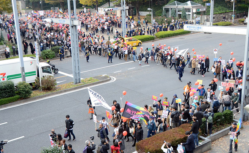 | | 「在特会」のヘイトデモ(2013年3月) | | | 反ヘイト東京大行進(2015年11月) |