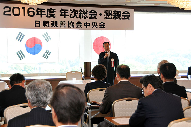 日韓親善協会中央会(会長=河村建夫自民党衆議院議員)の2016年度年次総会が23日、東京都内で開かれた。河村会長は「国交50年の昨年は、民団とのスクラムで両国の関係改善に大きな光を見せた。今年こそ、かつての兄弟国のような関係を一日も早く取り戻せるよう草の根活動に力を注ぐ」と力説した。