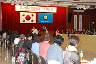 婦人会中央本部(余玉善会長)は3月26日、韓国中央会館で開催した第26回中央委員会で過去1年間の活動を振り返り、新年度活動方針と予算を採択した。全国から中央委員75人が出席。民団中央本部から呉公太団長と韓在銀監察委員長が激励に駆けつけた。 活動報告によれば、東日本大震災の余波を受けて一時は開催が危ぶまれていた昨年の全国大研修会に例年どおり、全国から役員と一般会員約2000人が参加した。9月の本国研修会で青瓦台を礼訪した際には、岩手、宮城、福島の各会長が被災地での支援事業について報告し、金潤玉大統領夫人から激励を受けた。 課題は次世代育成だ。各地ではブライダルや文化サークル活動に力を入れ、若返りを図っている。余会長は、「過疎地では次の婦人会を担う人材が育ってきている。いろいろ問題はあろうとも、オモニパワーを発揮し、頑張っていきたい」と述べた。 12年度の大研修会は開催地を全国7地協から5地協に変更し、各県本部の横の交流を図っていく。講師陣には衆議院議員の田中真紀子さんやコリア国際研究所の朴斗鎮所長らを予定している。 教育基金を寄付 席上、婦人会中央は、老朽化した校舎の再建築を目指す大阪の白頭学院に対し「教育振興基金」として300万円を贈った。余会長が金聖大理事長に手渡した。 (2012.4.12 民団新聞) |