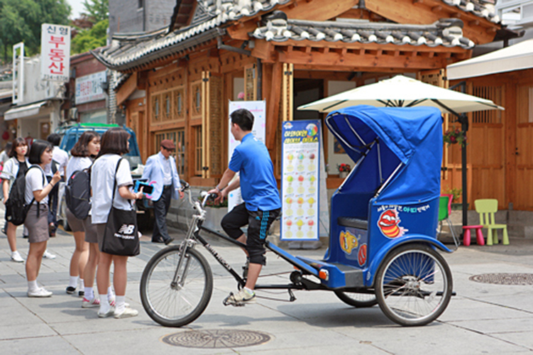 京都や東京の下町などで見かける人力車。ソウルでも古き良き街並みと新しさが調和する人気エリア三清洞に、三輪タイプの人力車が登場し、新たな観光名物として注目を集めている。 コースは、国立現代美術館や北村韓屋マウルを巡る西北村コース、昌徳宮や「冬のソナタ」のロケ地、中央高校を巡る東北村コース、朝鮮王朝最後の王・高宗の生家である雲峴宮や曹渓寺を巡る南北村コースの3種類。 ガイド役のライダーはエリアやスポットの解説のほか、おすすめのグルメ店情報も教えてくれる。もちろんコースの途中で一時下車し、観光施設を見学したり、記念撮影も可能。人力車は観光だけでなく、交通手段としての利用もOK(1人10分5000ウォン〜、定員2人)。 (2015.6.10 民団新聞) |
