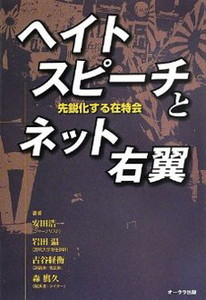 | 有田芳生著『ヘイトスピーチとたたかう!』(岩波書店刊)。 定価1500円+税。 不正義とたたかうために立ち上がった著者が、様々な疑問に答える。 | 安田浩一・岩田温・古谷経衡・森鷹久著『ヘイトスピーチとネット右翼』 (オークラ出版刊)。定価1620円(税込)。 左右の立場を超え若き論客たちが挑む。 | 樋口直人著『日本型拝外主義』 (名古屋大学出版会刊)。定価4200円+税。 在特会への直接調査と海外での膨大な極右・移民研究の蓄積をふまえ、知られざる全貌を紹介。 |