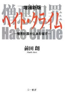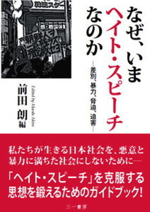 | 佐波優子著『女子と愛国』 (祥伝社刊)。定価1500円+税。 保守化し愛国活動に走る女性が増え続けている実態と心理に迫る。 | 安田浩一著『ネットと愛国』 (講談社刊)。定価1700円+税。 在特会は、何に魅せられ、怨嗟と憎悪のレイシズムに走るのか。 | 前田朗著『増補新版 ヘイト・クライム』 (三一書房刊)。定価1400円+税。 「ヘイトスピーチは言論でなく暴力と迫害」として、欧州諸国の具体的規制を紹介。憎悪犯罪を考える必読書。 |