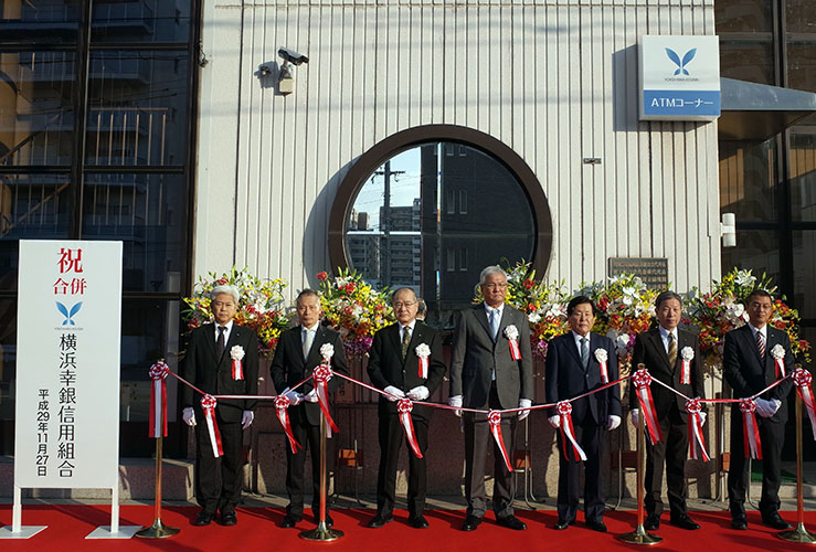 横浜幸銀信用組合と合併した岡山商銀信用組合の本店と支店が27日、横浜幸銀岡山支店と倉敷支店として営業を開始した。
