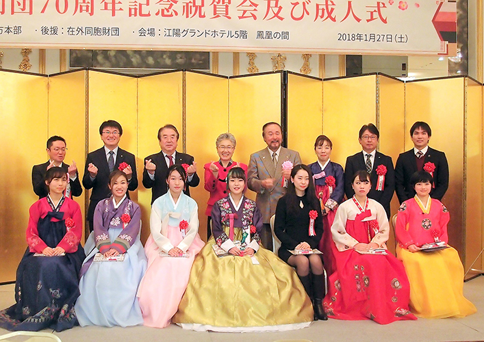 【宮城】民団宮城本部(金政郁団長)は27日、仙台市内のホテルで創団70周年記念式を開催。韓・日の関係者430人がお祝いに駆けつけた。