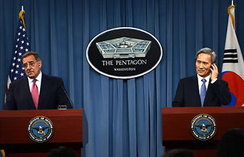 韓米両国は、2015年12月に戦時作戦統制権の韓国軍返還によって解体される韓米連合司令部と同等の機能を果たす新たな指揮協力機構(有事の際に韓国軍が主導、米軍が支援する形の司令部)を来年前半までに創設する一方、北韓の局地挑発の脅威に備えた合同計画に来年1月までに署名し、本格稼働することにした。 金寛鎮国防部長官とパネッタ米国防長官は10月24日、ワシントンで開かれた第44回韓米定例安保協議会(SCM)でこのような内容を盛り込んだ15項目の共同声明を発表、記者会見した(写真)。 両国は、北韓のミサイル挑発に対応し、発射前の段階で打撃する「キルチェーン(kill chain)」システムを15年までに構築するのに続き、発射されたミサイルを上空で迎撃する韓国型ミサイル防衛体制(KAMD)の構築も推進することで合意。さらに、西海上の北方限界線(NLL)が約60年間にわたり南北の軍事力を分離し、軍事的緊張を予防する効果的手段であったことを再確認し、北韓にNLLの実質的価値を認めて順守するよう求めた。 (2012.11.7 民団新聞) |