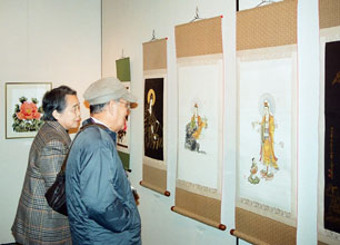 在日の東洋画家、李華真さんと、金圭範慶南科学技術大学校教授による作品展示会「東洋画と草木染めの出会い」が14日から18日まで、京都市国際交流会館(左京区)内の姉妹都市コーナー展示室で開かれた。 開幕式のテープカットでは、王清一民団京都本部団長をはじめ、李煕敦京都慶尚北道道民会会長、鄭興烈民団左京支部常任顧問、柴田重徳同館館長らが参加した。 韓国画家の月定鄭旻永さんに師事し、禅画の制作を行っている李さんは、海印寺の高僧から「華真」という名前を授かった。 李さんは「自分の人生を生きながら、ひたすら誰もが幸せになれるようにと祈る心で描き、全ての人が幸福になることを祈る作品」だと語った。 会場を訪れた人たちは、優しい色合いの草木染め作品と李さんの作品78点に見ほれていた。 (2011.12.21 民団新聞) |