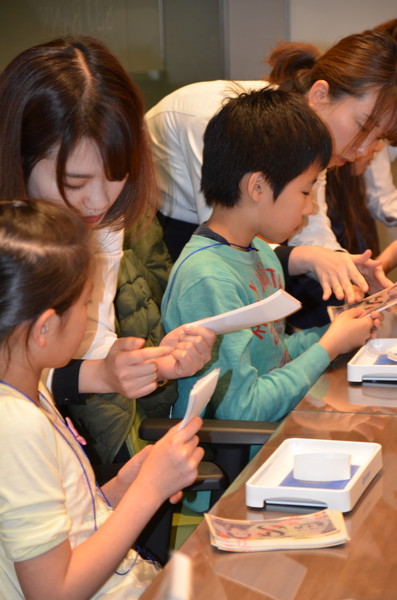 新韓金融グループの日本現地法人SBJ銀行は5日、同銀行の内部を見学し、窓口体験もできる「春休み銀行見学デー」を千代田区丸の内の東京支店で行った。