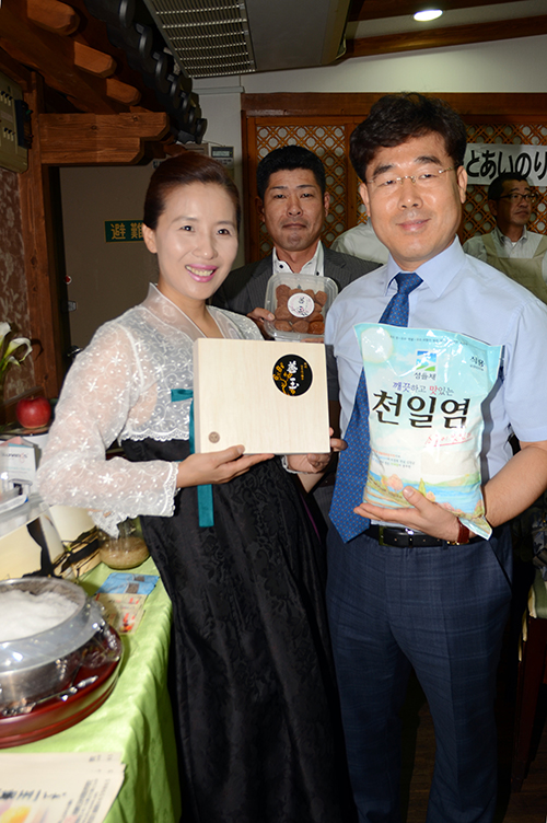 趙善玉さん 料理研究家の趙善玉さんが、紀州産の梅と韓国産の塩を使用した「紀州はちみつ梅干・善玉(ぜんだま)」を開発した。韓国産の塩を日本で普及させようと、和歌山県田辺市の梅干しメーカーである株式会社濱田に生産を委託した。 梅は贈答用にも用いられるという最高品質の南高梅。塩は「キムチに使うと甘みが出る」と、民団韓食ネット協議会(崔千浩会長)が業務提携している品質の優れた天日塩。さらに、たっぷりの蜂蜜でまろやかでほどよい甘さを出した。 趙さんは薬膳料理を研究しており、健康食としての梅干しには以前からあこがれてきたという。いつか自分だけのブランドを作りたいという夢が、民団韓食ネット協議会の協力を得てようやくかなった。 問い合わせは趙善玉料理研究院(03・6233・7867)。 (2015.9.30 民団新聞) |
