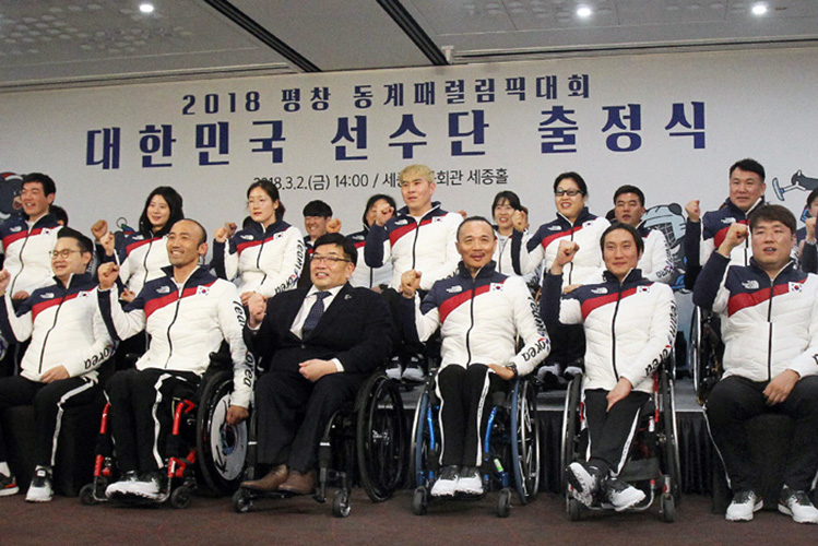 9日に開幕する平昌冬季パラリンピックに出場する韓国代表選手団の出陣式が2日、ソウルの世宗文化会館で行われ、選手たちは力強く必勝宣言をした。