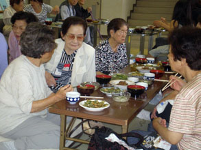 ¡¡6·î¤Î¿©»ö²ñ¡£¥Æ¡¼¥Ö¥ë¤Ë¤Ï¡¢¥µ¥ó¥Á¥å¤Î¥Á¥ç¥ì¥®¥µ¥é¥À¤ä¥·¥ì¥®¥¹¡¼¥×¡¢¥Á¥Â¥ß¡¢Æù¤È¥³¥ó¥Ë¥ã¥¯¤ÎßÖ¤áʪ¡¢¥à¥ë¥¥à¥Á¤¬½ê¶¹¤·¤Èʤó¤À¡£¿©»ö¤¬ºÑ¤à¤È¥«¥é¥ª¥±¤Ç²Î¤Ã¤¿¤êÍ٤俤ê¤È¡¢³Ú¤·¤¤»þ´Ö¤ò²á¤´¤·¤¿¡£»²²Ã¼Ô¤Î¤Ê¤«¤ÇºÇ¹âÎð¼Ô¤Î²«Äçô¦¥Ï¥ë¥â¥Ë¡Ê92¡Ë¤Ï¡¢µìͧ¤ò¸«¤Ä¤±¤ë¤È¡¢¡Ö¸µµ¤¤ä¤Ã¤¿¡©¡¡µ×¤·¤Ö¤ê¤ä¤Ê¡×¤È¶î¤±´ó¤ê¡¢ÀÎÏä˲֤òºé¤«¤»¤Æ¤¤¤¿¡£