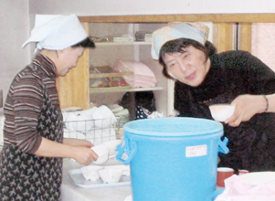 東京 江戸川支部 毎年4回ハラボジ、ハルモニを会館に招いて昼食会を開催。お年寄りたちは手作りの韓国料理に舌鼓みを打ち会話を楽しむ