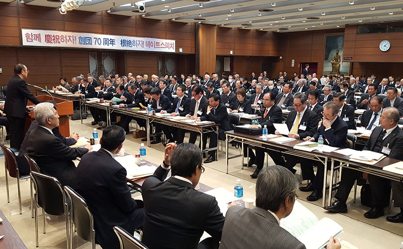 本団は昨年11月の韓日首脳会談がつくった関係修復の流れを加速させる決意のもとに朝鮮通信使資料の記憶遺産登録推進など韓日友好の促進に貢献する事業を拡充する一方、ヘイトスピーチなど韓日関係の阻害要因を取り除く運動を果敢に展開する。同胞青少年が健全に成長する環境を整え、本団の存立基盤を固めることにも直結するこの運動の成否は、言うまでもなく我われ責任世代の双肩にかかっている。