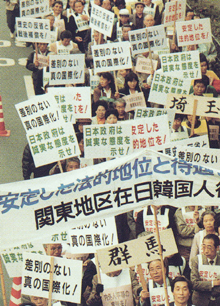 「91年問題要求貫徹在日韓国人大会」のデモ行進(89年12月5日)
