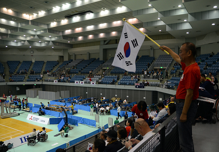 【千葉】車いすバスケットボールのアジア・オセアニア選手権が千葉ポートアリーナであった。来年のリオパラリンピックの出場権がかかった大事な試合だけに、民団千葉本部(金鎭得団長)は太極旗を手に韓国選手団に声援を送った。 16日の準決勝はイランを相手に67対83で逆転負け。17日の日本との3位決定戦でも、序盤こそリードしたものの後半からシュートのミスが...