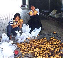 | | 豊作のジャガイモに生徒たちも大喜び |