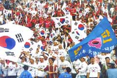 | 民団の「在日韓国人後援会」の募金がスタート。 今後、開催都市への支援や 応援団なども展開する (写真は97年9月の韓日戦で) |