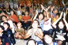初日は、パインリゾート野外に作られた特設ステージで全員が集まって歓迎パーティーが行われた。民団中央本部の金宰淑団長も駆けつけ、「オリニのみなさん、ハラボジ、ハルモニが育った国にやってきました。短い期間ですが、みなさんの母国を十分に楽しんでください」と全国から集ったかわいいオリニの姿に目を細めながら呼びかけた。教育人的資源部長官の「正しい祖国への理解を生む意義ある集いです。母国の友達と友情を育み、また自分自身を知る訪問となって欲しい」と激励辞が代読された。