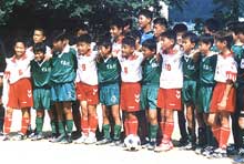 | 交流試合のあと記念写真を撮る 西大門区と墨田区の少年サッカーイレブン |