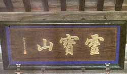 | | 満願寺の本堂の山号「霊寶山」と彫られた扁額 |
