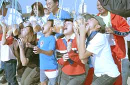 | | パン食い競争でハッスルするオリニたち(滋賀) |