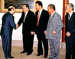 | 大阪府庁に横山ノック知事を訪ね要望した 洪性仁民団大阪府本部本部団長ら |