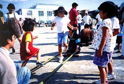 運動会のクライマックスは後半の綱引き。子どもから大人まで二十五人から三十人で四チームをつくり、決勝戦までお互い譲らず白熱した競技を繰り広げた。