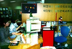 同様の趣旨に基づき、基金事務局付属の図書センターも九五年十月二日に開館した。現在、蔵書数は韓国語図書六千六百八十冊、日本語図書六千四十二冊、洋書七百七十七冊。将来的には合わせて二万冊以上に増やすことにしている。このほか新聞、雑誌、マイクロフイルム、ビデオ、CDなどを取り揃えている。開館以来の登録者は会社員、研究者、大学・大学院生など千百十二人に達した(九八年十月二十八日現在)。