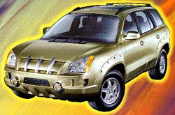 現代の「サンタ・フェ」は精かんで力強い外観が特徴。4WDシステム採用、独立懸架サスペンションを装備しており、市街地はもとよりオフロードもものとはしないという。もう一つの主力車種「トラジェ」はミニバンでありながら外見は高級セダン仕様で7人乗り。両車種とも2000年末から2001年にかけて日本市場にデビューさせる予定。価格は未定。