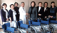| 在日韓国婦人会も福祉事業に全力投球している。地域の祭りで韓国食品などを販売。その収益金で購入した車いすを寄贈した。 |