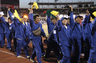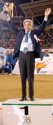 ■□ 「海外同胞の部」で総合優勝を果たした朴安淳・在日同胞選手団長は日本生まれの在日2世。清州市が故郷で、滞在期間中、2年前に他界したアボジが眠る墓を訪れ、優勝の報告を行った。 学生時代はバスケットボール選手として活躍、40年ほど前、韓国国体にも参加し多くのスポーツ仲間たちと知り合った経験を持っている。 「成績よりも日本で育った同胞青少年たちが母国の地でのびのびとプレーし、スポーツマン同士ふれあってくれることだけを願っていた」と、後輩たちのスポーツを通じた祖国とのふれあいを強調しながら、「時代は変わりつつも、全国にはまだまだ優秀な同胞選手が埋もれているはず。一人でも多くの優秀選手を発掘し、母国の大舞台でプレーさせてあげたい」。 大役を終えた安堵感の奥に次世代たちへの新たな期待感をのぞかせた。 (2004.10.20 民団新聞) |