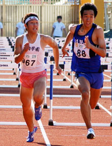 ゴルフは無念の銅 昨年、ホールインワンなども飛び出し、金メダル3個を獲得したゴルフは故障者続出。昨年の王者、孫永基が最終日にくずれ惜しくも3位にとどまった。 また、久しぶりにエントリーした陸上でも高校男子110メートルハードルの徐泰治君(神戸市)が予選2位で決勝に進出、メダルこそのがしたが6位入賞を果たした。 |