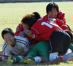 テニスの活躍で在日同胞は、他の種目にもその勢いが乗り移った。種目の中でも人気が最も高いのはやはりサッカー。3年ぶりの復活となった昨年、優勝の期待が高かったが準決勝で在米同胞に1‐2で涙を飲んだ。今年はシードとなり、準々決勝からのスタート。初戦の相手、在豪州同胞チームに苦戦しながらも1‐0と撃破、在米同胞との準決勝では、2‐0と圧倒し、昨年の雪辱を果たした。 初出場の在カナダ同胞との決勝戦では、攻守に勝る在日同胞が2‐0で勝ち、00年釜山大会以来の優勝を飾った。 Kリーグの目に 準決勝で25メートルの華麗なFKで先制点を決めた梁秀誠君は、サッカー留学生が多いドイツや米国、豪州同胞選手を目当てに試合会場を訪れていたスカウトの目に止まった。決勝戦の翌日、そのままKリーグチームのテストを受けることになり、在日同胞選手たちの夢を膨らませた。