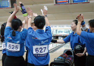 金メダル量産 男女あわせて8個の金メダルを競うボウリングでは、女子個人の孫裕充子、男子個人の金晃男がアベック優勝したのをはじめ、女子団体3人戦、同5人戦、総合で金メダルを獲得、金5、銀2、銅1とメダルを量産。 |