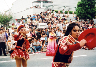 ■□ 四天王寺ワッソ 4年ぶり復活 大阪市中央区の「難波宮跡公園」で11月7日、古代の韓半島と日本列島の交流を再現した「四天王寺ワッソ」が、4年ぶりに復活した。パレードでは耽羅、加耶、新羅の往時そのままの古式衣装を身につけた約720人のボランティアが、会場を練り歩き、集まった約2万人を楽しませた。