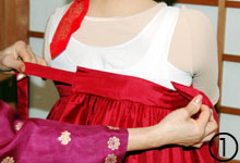 | 創団60周年…民団行事には美しく着飾って 韓国固有の衣装である韓服は、直線と曲線が基本の伝統衣装。在日同胞も名節や結婚式などの特別な日に着用するが、着る機会は限られている。今年10月の創団60周年を控え、民団行事でチマ・チョゴリを着る場も増えそうだ。韓国茶道・伝統礼節協会日本東京支部長の李瑛子さん(東京・港区)に、着付けのポイントを聞いた。