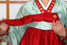 ■□ 韓服の歴史は3国時代から始まったもので、原型は中国北方の騎馬民族が着ていた胡服にあるといわれている。上衣(チョゴリ)と下衣(チマ)が分かれ、袖が狭く防寒機能に優れていた。韓服の構成はお尻まであるチョゴリとチマ、そして外出時に着用したトゥルマギを基本にした。 韓服は時代とともに、チマの長さや袖、襟の形などが少しずつ変化していく。朝鮮朝後期にはチョゴリは脇まで短くなり、キッ(襟)とドンジョン(掛け衿)、袖先に足す色合いの違う布などは、各部が非常に狭くなった。 だが時代ごとに形や色などの変化を取り入れたのは、支配者階級や上流層に限られたもので、朝鮮朝時代までの庶民たちの韓服は特に大きな変化はなかった。 韓服が転換期を迎えたのは、1900年代の開花期に西欧の文化が流入したことによる。 男性と同等の教育を受けるようになった女性たちの社会進出により、チョゴリは徐々に短くなり、コルムとチマの長さも短く、さらにチマの膨らみをおさえた。 解放以後には西欧の服飾の影響を受けて、簡素化された改良韓服が生まれ、布も合成繊維が登場。朝鮮朝時代の従来のボックス型はAライン型へと流行が変わり、伝統的な韓服の形態が大きく変化した。 現在、韓国では人気歴史ドラマ「チャングムの誓い」などの影響で、朝鮮朝中期の韓服が注目されている。チョゴリは一時より長くなり、コルムも短くなるなど韓服は現代も変遷を遂げ続けている。