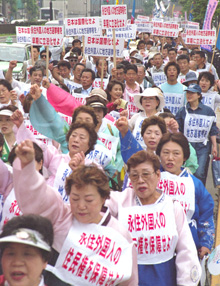 ■□ 民団の業務や事業は多岐にわたって枚挙にいとまがない。在日同胞のライフサイクルに即したサービスと、在日同胞と韓国、日本をつなぐ市民レベルでの各種サービスを豊富に取り揃えた総合商社であり、地域に密着したコンビニエンス・ストアの趣すらある。 基礎的な通常業務にはまず、地方公共団体の窓口と似通った在外国民登録、旅券申請手続き、出生・死亡・婚姻届などを含む戸籍整理がある。「法律相談室」や「生活相談室」などを通じて、韓日両国の行政当局と同胞との間に発生する手続きごとやトラブルの処理にも当たる。また、日本領海上で発生した韓国船のトラブルの事後処理などに対応するのはもちろん、最近では韓国からの訪日者の急増にともなって増えてきた事故や事件の処理にも当たることが多い。 全同胞的な親睦行事だけでも数が多く、中央本部が開く民団フェスティバルをはじめ地方本部・支部単位で一斉に開催するものに新年会、花見・野遊会、敬老会、10月マダンなどがあり、近年では朝鮮総連同胞と合同で行うばかりか、他の在日外国人と楽しむケースが増えてきた。 また、日本各地の地域祭りに「朝鮮通信使」や「農楽隊」などを編成して民族色豊かに参加するのも当たり前になり、民団同胞が中心になって多くの国籍からなる地域の定住外国人と日本人住民のための多文化交流フェスティバルを開催する傾向も目立っている。 こうした通常業務のなかでも、民団が最も力を注いでいるのは相互扶助の精神に基づいた同胞たちの冠婚葬祭への協助であり、ライフワークの重要な節目に合わせたサービスだ。 全日制民族学校の運営支援、日本の公立小・中学校に通う同胞子弟のための民族学級の設立・運営支援をはじめ、課外制民族学校や韓国語教室を各地で直接運営している。常設機関による教育だけでなく、小中学生を対象にした夏季臨海・林間学校や500人を上回る規模のオリニ・ソウルジャンボリーを開催している。 今年40周年を迎える高校生・大学生を対象にした母国夏季学校も民族教育の重要な一環になっており、この世代を対象にした奨学金事業にも充実を期している。朝鮮総連と共同運営する形式の(財)朝鮮奨学会、民団員の基金を基に運営される(財)韓国教育財団のほかに、民団や関連・友好団体が運営する奨学機関が全国に5つある。 同胞子弟の就職斡旋事業や同胞どうしの出会いの場を提供するブライダル事業もある。生涯教育の制度として講座制民族大学を設け、著名大学教授など一流講師陣を整えて全国で開催した実績もある。 近年その重要性が増しているものに高齢者福祉があり、民団は同胞集住地域を中心に通所介護サービス(デイケア)を全国展開している。また、同胞団体による老人ホームの設立・運営を支援するとともに、現在は民団主導による老人ホームの建設も推進中だ。